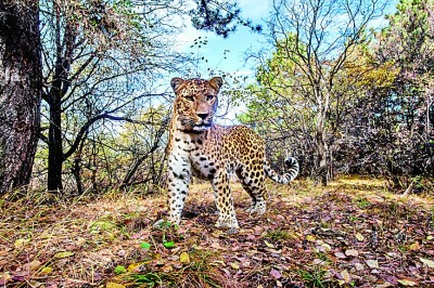 “看!拍到豹子了!”油松树下,程三货按下红外相机的播放键,只见一只华北豹踩着落叶,从镜头前优雅走过……“真俊啊牛博士,说不定就是F9的后代!”